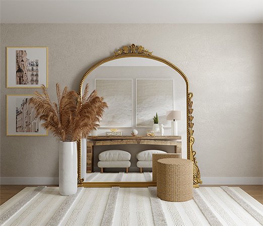 Mirrors are a designer’s secret weapon when it comes to opening up a space. Placing a large mirror across from a window or near a light source instantly brightens the room and gives the illusion of more square footage. It’s a simple trick that works wonders, especially in tight entryways, living rooms, or apartments.