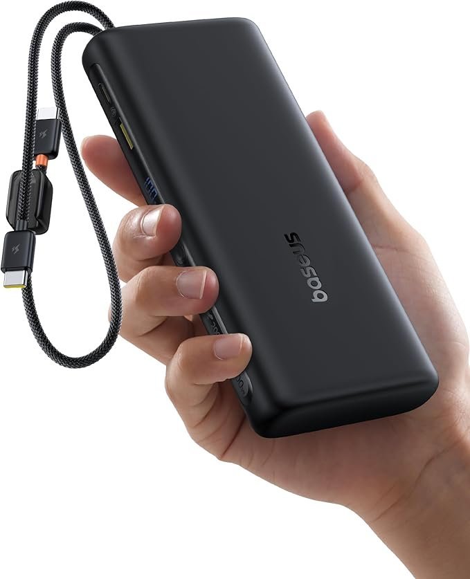 For laptop users, this Baseus model delivers enough power to charge MacBooks and other USB-C laptops. The 20,000mAh capacity keeps you working through long flights or power outages. It’s definitely bulky compared to phone-focused chargers, but that’s the trade-off for powering hungry devices.